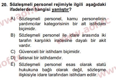 2019 HUK303U – Kamu Personel Hukuku Çıkmış Sınav Soruları (Final)