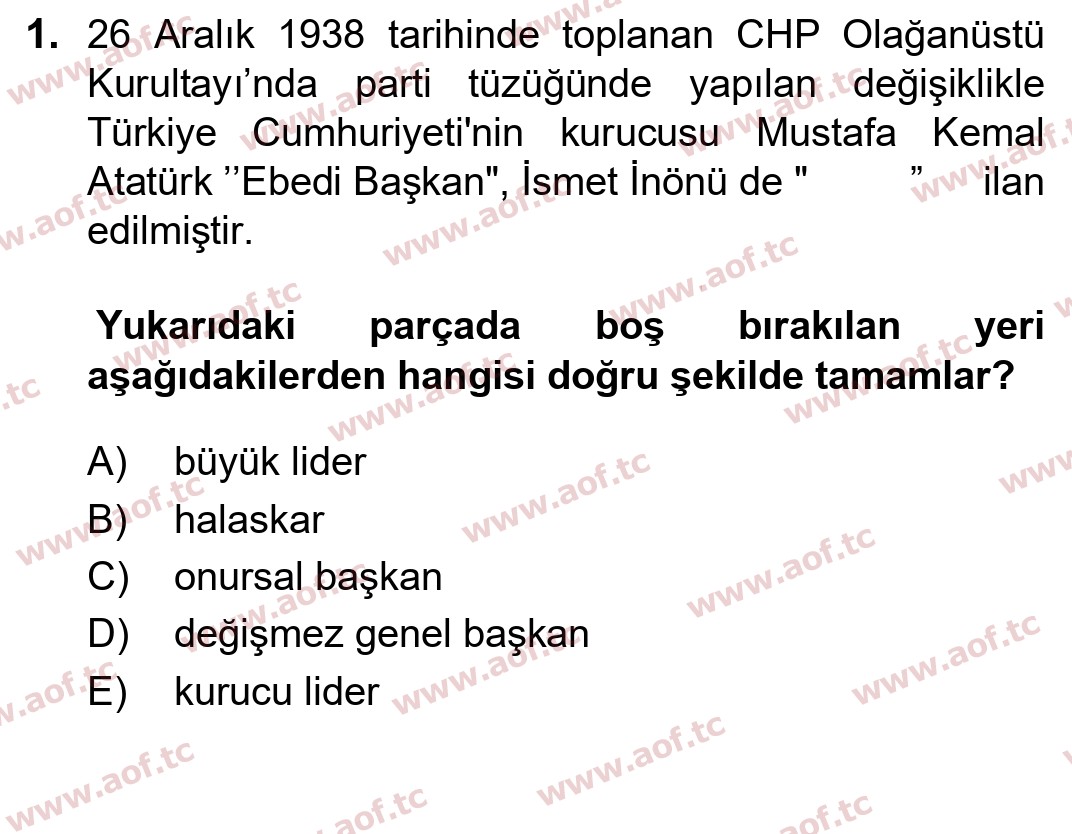 2023 TAR202U – Atatürk İlkeleri ve İnkılap Tarihi 2 Çıkmış Sınav Soruları (Arasınav)